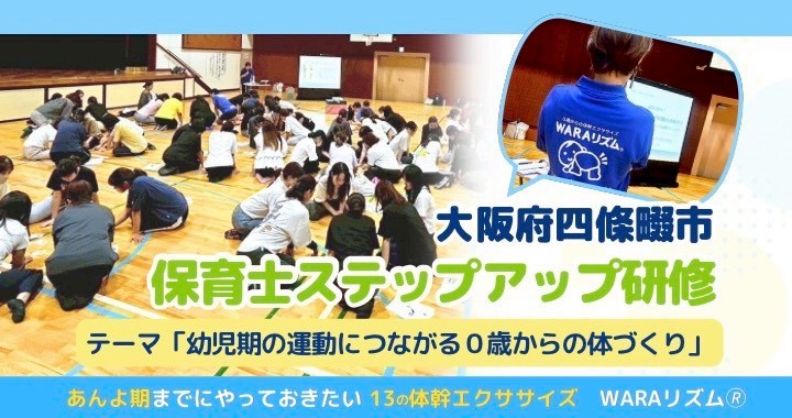 おむつ替え・お着替え・食事前・お散歩前などの「お世話の時間」がそのまま、子どもたちの体幹トレーニングにつながる運動遊び×お世話術が学べる研修です。